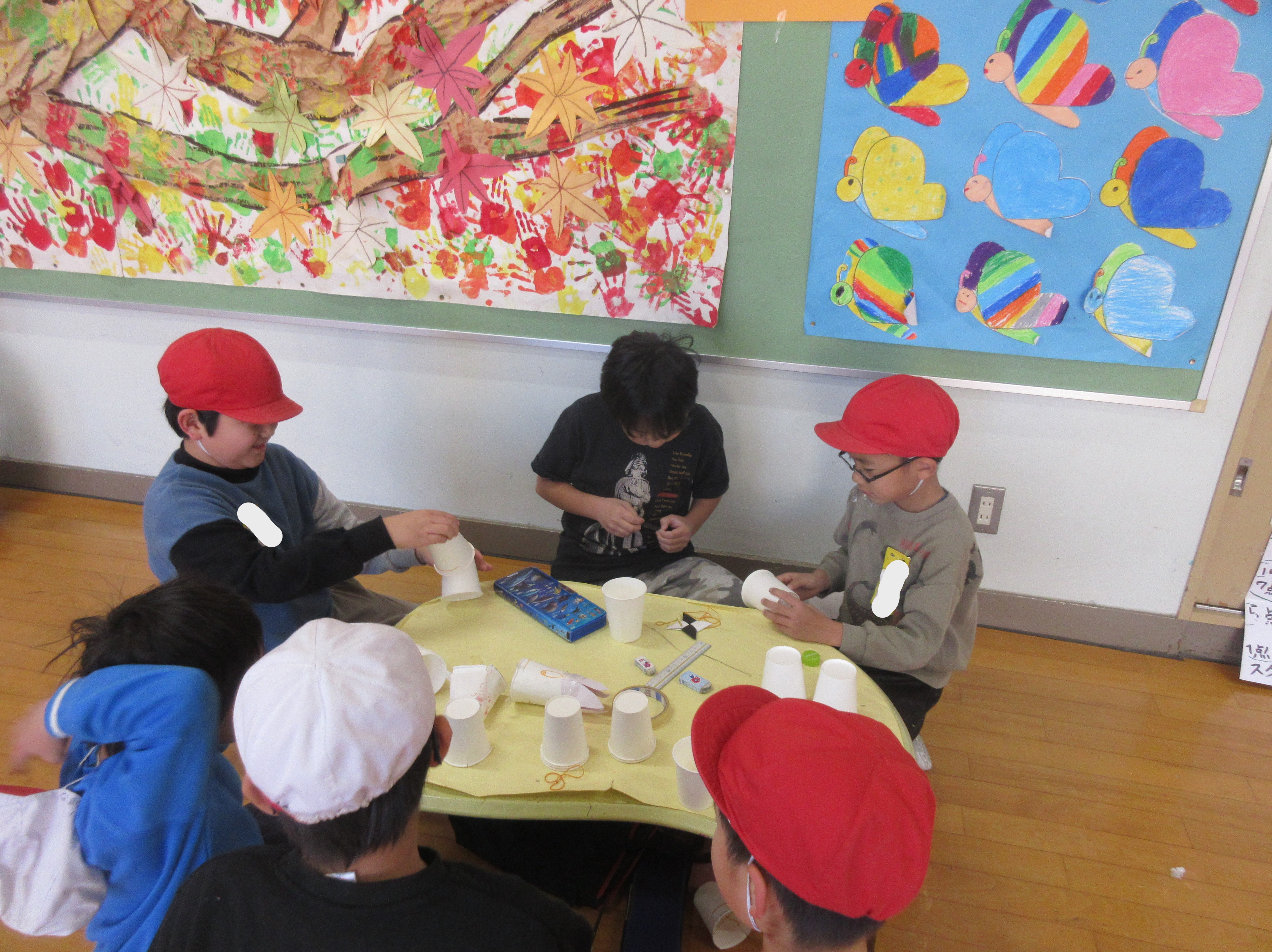 前半は、2年生からおもちゃの作り方を教わりながら、一緒におもちゃを作りました。