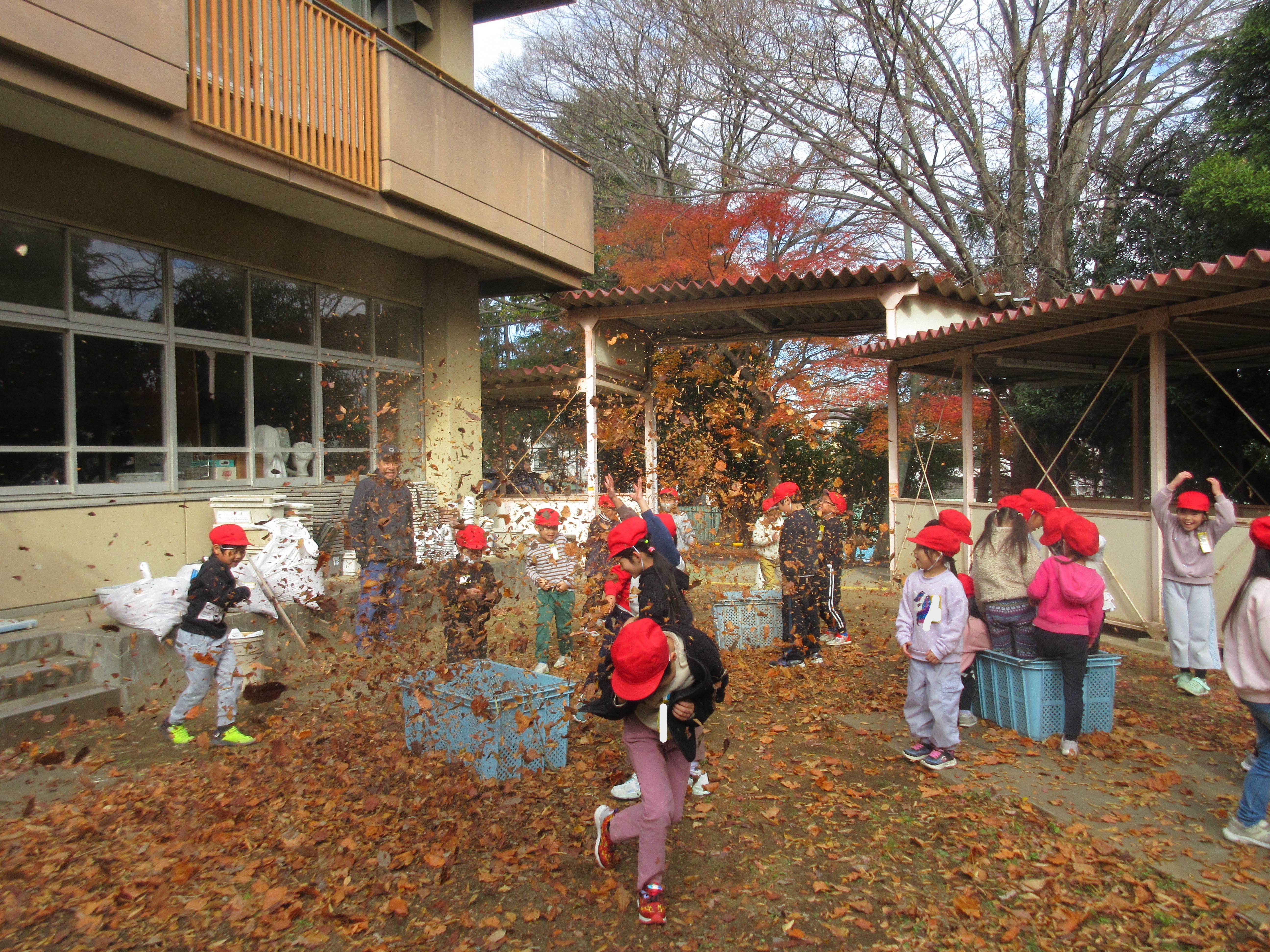 生活科の授業で、落ち葉あそびをしました。