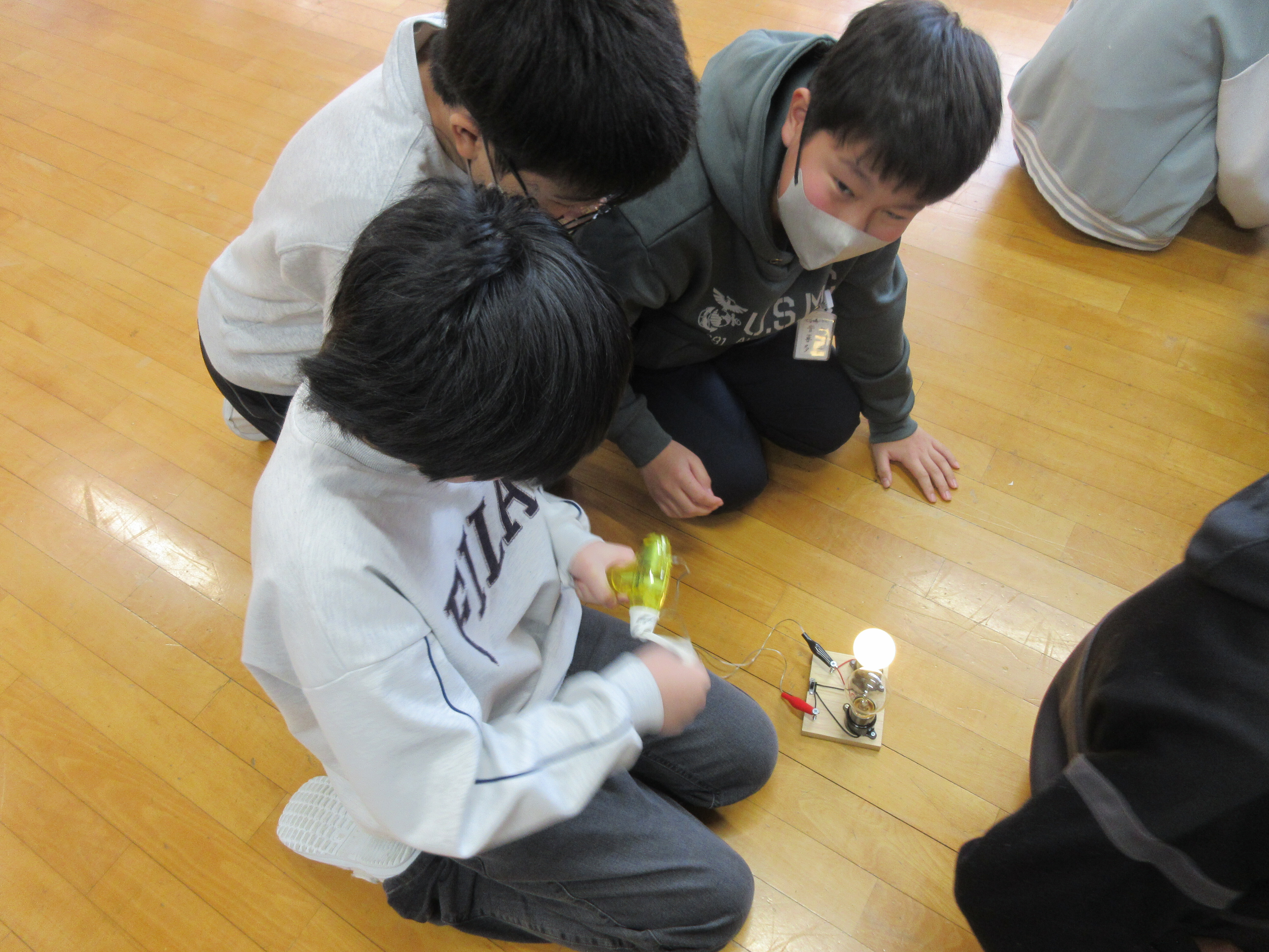 1月20日の理科の学習では、さいたま市青少年宇宙科学館の職員の方々による、スクール・サポート・サイエンス教室が行われました。「電気とわたしたちのくらし」というテーマで、これまで理科で学んできた内容を踏まえつつ、発展的な学びも取り入れた実験を数多く行っていただきました。火力発電や風力発電、太陽光発電などについて、実験を通して深く学ぶことができました。