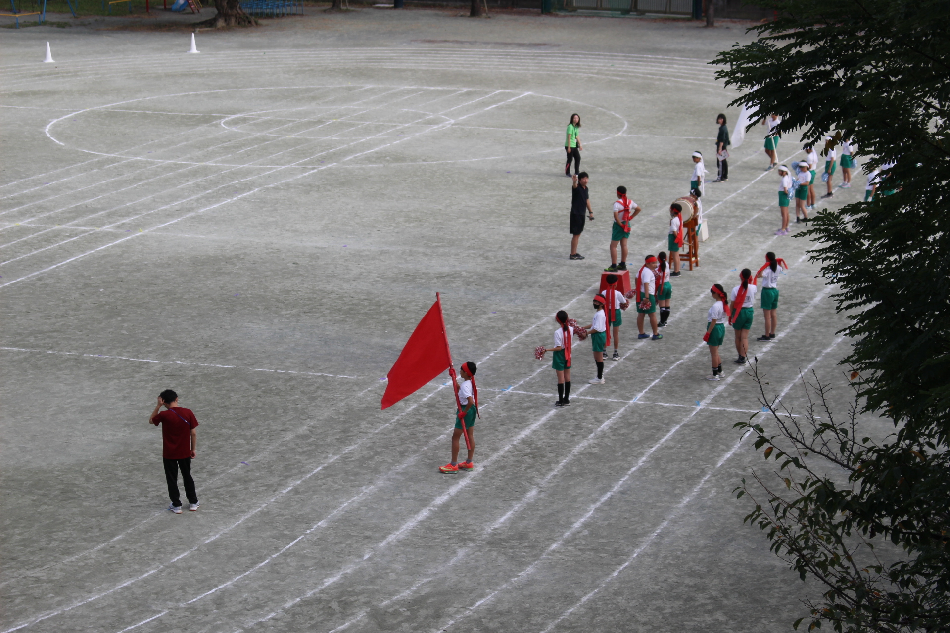 運動会の全体練習を行いました。25日(土)の本番に向け、がんばって取り組んでいます。